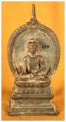 | Description / विवरण | It is an image of Buddha, sealed in the vajraprayankasana on a double petalled lotus pedestal. Buddha having two hands right hand is in abhaymudra and left hand palm bearing a part of the uttarasanga is held above the lap. His hair is arranged on Jatamukuta. A decorated oval halo is placed behind the image. |