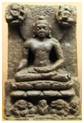 | Description / विवरण | Lord Budha is seated in Padmasana in dhyna mudra on a double petalled lotus pedestal. His right palm is broken. Branches of tree and a plain halo are depicted behind the head of lord Buddha. He is wearing karna kundal .Two flying Vidhyadharas are depicted on the top of both sides of the image. Lower part of the lotus pedestal is decorated with two lion figures and two female figures, where as the right side female figure is damaged. |