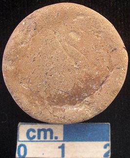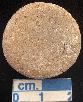 | Description / विवरण | Terracotta disc, small-sized, reddish, traces of red slip is seen on surface, both the surfaces and sides are plain, punched. |