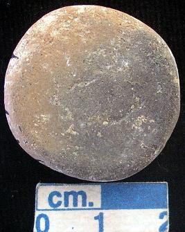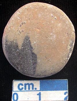 | Description / विवरण | Terracotta disc, small-sized, one surface is red and other is dark greyish, both the surfaces and sides are plain. |