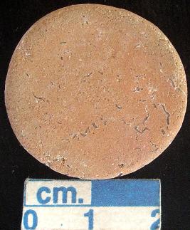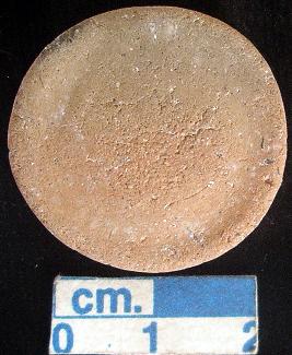 | Description / विवरण | Terracotta disc, small-sized, reddish, slightly punched, mica particles are seen all over the plain surfaces and sides. |