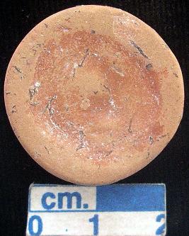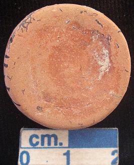 | Description / विवरण | Terracotta disc, small-sized, red, punched, traces of red slip is seen all over, both the surfaces and sides are plain. |