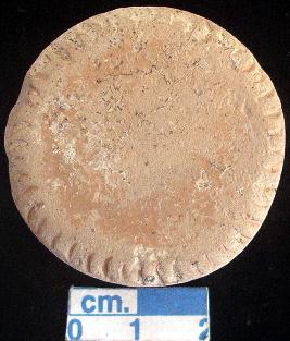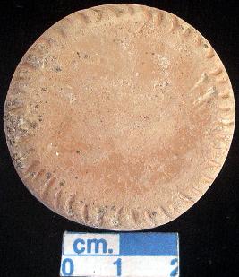 | Description / विवरण | Terracotta disc, in medium size, reddish in colour, traces of red slip all over the body with notches edges on both the surfaces, sides are plain. |