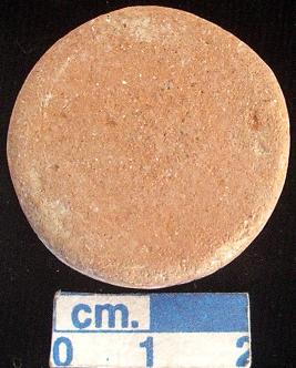 | Description / विवरण | Terracotta disc, small-sized, reddish, mica particles are seen all over the body, both the surfaces and sides are plain. |