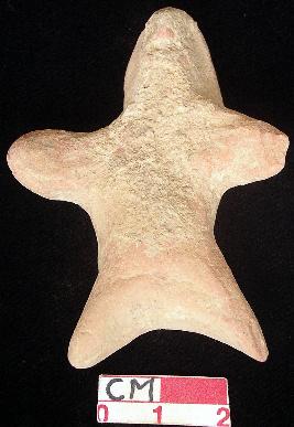 | Description / विवरण | A terracotta archaic human figurine, red, pin hole eyes, pinched nose, open slit mouth, short out stretched arms out of which the left one is slightly broken, short stumpy legs, treated with red wash, handmade. |