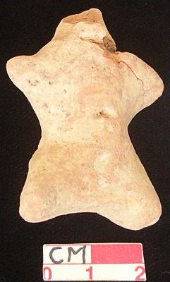 | Description / विवरण | A terracotta archaic human figurine with broken head, red, out stretched arms, pin hole navel, out stretched legs, treated with red wash, handmade. |