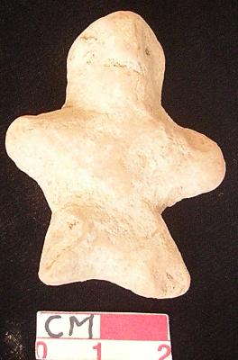 | Description / विवरण | A terracotta archaic human figurine with round head, pin hole eyes, pinched nose and mouth, short out stretched stumpy arms, short wide bridged stumpy left leg but right leg is mutilated, red colour, handmade. |