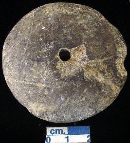 | Description / विवरण | Terracota wheel, black, bi-convex surfaces showing hub out side. |