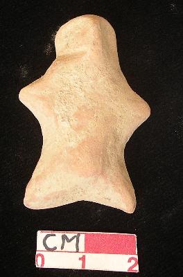 | Description / विवरण | A terracotta archaic male figurine with round head, punched eyes, pinched nose, short out stretched stumpy arms, short wide bridged stumpy legs, phallus indicated, red colour, handmade. |