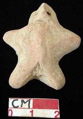 | Description / विवरण | A terracotta archaic human figurine with short head, punched eyes, pinched nose and slit open mouth, short out stretched stumpy arms, short wide bridged stumpy legs, red colour, handmade. |