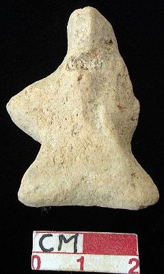 | Description / विवरण | A terracotta archaic human figurine with short head, punched eyes, pinched nose and slit open mouth, short out stretched stumpy right arm but left is broken, punched navel, short wide bridged stumpy legs, dull red colour, handmade. |