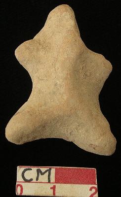 | Description / विवरण | A terracotta archaic human figurine with small head, very small pinched nose, very short out stretched arms, short stumpy legs, traces of red slip seen, |