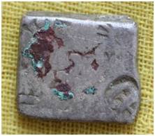 | Description / विवरण | The coin is rectangular in shape. Obverse Sun, animal, Caduceus and two human figure. Reverse Caduceus. |