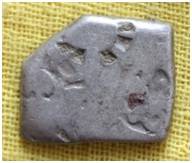 | Description / विवरण | The coin is rectangular in shape. Obverse Sun, Six armed wheel and other symbols are defaced. Reverse Symbols are not clearly visible. |