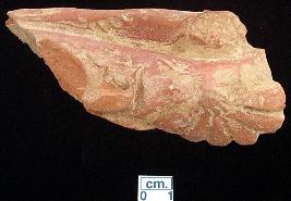 | Description / विवरण | Fragmentory terracotta unidentified object, red in colour, decorated with a flower with six petals in relief on one side, another side has a fenced border with dotted decorations. |