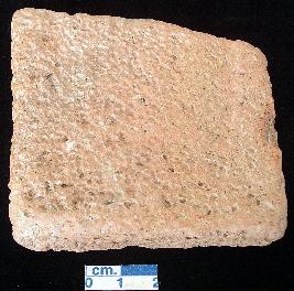 | Description / विवरण | Fragment of a skin rubber, red in colour, hand made, square in shape, incised dot marks seen on the surface. |