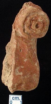 | Description / विवरण | Fragment of a terracotta unidentified object, red in colour and treated with red slip all over, one circular knot with two incised concentrated circles with central puncture made on end of one surface, small pin hole seen on central surface, rest part damaged. |