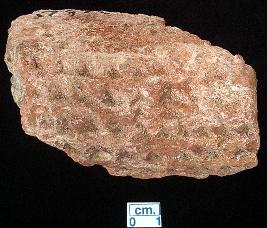 | Description / विवरण | Fragment of a terracotta skin rubber, red in colour, multiple denticulation marks on all over cylindrical body. |