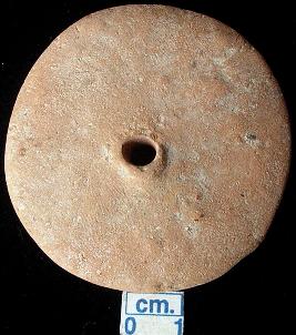 | Description / विवरण | A terracotta wheel, red in colour, hand made, circular in shape, flat sides, a perforation in centre. |