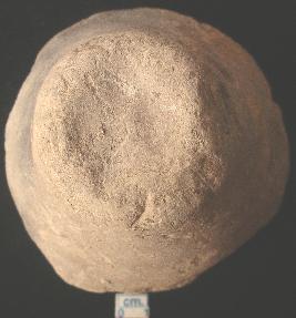 | Description / विवरण | A big terracotta dabber, dull red and grey in colour, crude fabric, flat base and conical top. |