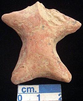 | Description / विवरण | An archaic terracotta human figurine with broken head, red, short out stretched arms, short bridged stumpy legs, treated with red slip, handmade. |