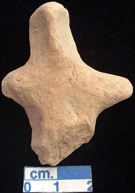 | Description / विवरण | An archaic terracotta human figurine with round head, red, short out stretched arms but the right one is broken, both short bridged stumpy legs are broken, treated with red wash, handmade. |