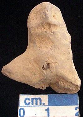 | Description / विवरण | An archaic terracotta human figurine with round head, red, pin hole eyes, pinched nose, open mouth, short out stretched arms but the left one is broken, lower portion is broken, blackish due to over firing, handmade. |