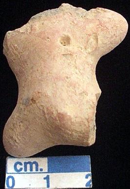 | Description / विवरण | An archaic terracotta human figurine with broken head, red, short out stretched arms but the right one is broken, pin hole navel, short bridged stumpy legs but the left one is broken, treated with red wash, handmade. |