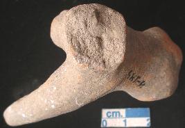 | Description / विवरण | A terracotta animal figurine, red, three legs, head and tail broken. |