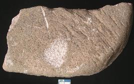 | Description / विवरण | Fragment of a stone Quern, the denticulated marks are missing due to use. |