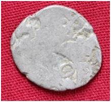 | Description / विवरण | The shape of the coin is oval. Obverse Sun, caduceus and six armed symbol. Reverse Five dots and three arched hill. |