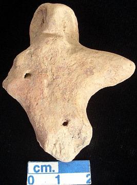 | Description / विवरण | An archaic terracotta human figurine with pinched head, red, pinched nose, pin hole eyes, slit mouth, short out stretched arms but the right one is broken, punched navel, both legs are broken, treated with red wash, handmade. |