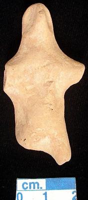 | Description / विवरण | An archaic terracotta human figurine with elongeted head, red, pinched nose, out stretched arms but both are damaged, short wide bridged stumpy legs but the right one is broken, treated with red wash, handmade. |