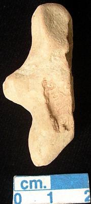 | Description / विवरण | An archaic terracotta human figurine with round head, red, pinched nose, short out stretched arms but the left one is broken, short wide bridged stumpy legs but the left one is broken, treated with red wash, handmade. |
