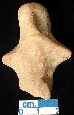 | Description / विवरण | An archaic terracotta human figurine with round head, red, pinched nose, short out stretched arms but the right one is slightly damaged, both legs are broken, treated with red wash, handmade. |