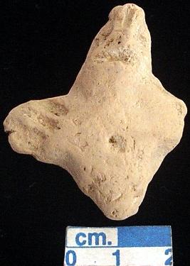 | Description / विवरण | An archaic terracotta human figurine, red, pin hole eyes, broken pinched nose, open slit mouth, short out stretched arms with three incised lines but the left one is broken ,pin hole navel, both short wide bridged stumpy legs are broken, treated with red wash, handmade. |