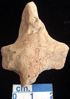 | Description / विवरण | An archaic terracotta human figurine, red, pin hole eyes, pinched nose, open mouth, both short out stretched arms are slightly broken, lower portion is broken, traces of red slip, handmade. |