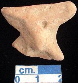 | Description / विवरण | An archaic terracotta human figurine with broken head, red, short out stretched arms, pin hole navel, both legs are broken, treated with red wash, handmade. |