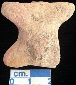 | Description / विवरण | An archaic terracotta human figurine with broken head, red, short out stretched arms, short bridged legs but the left one is broken, treated with red wash, handmade. |