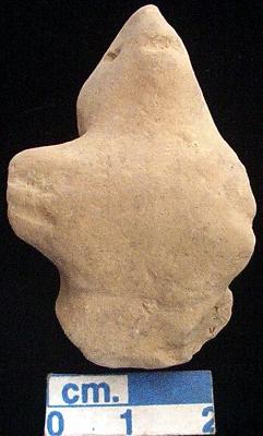 | Description / विवरण | An archaic terracotta human figurine, red, pin hole eyes, pinched nose, open mouth, short out stretched arms with two incised lines but the left one is broken and right one is broken, pin hole navel, both short wide bridged stumpy legs are broken, treated with red wash, handmade. |