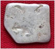 | Description / विवरण | The shape of the coin is irregular. This is an imperial type of punch marked coin. Obverse Some indistinct symbols. Reverse Crescent. |