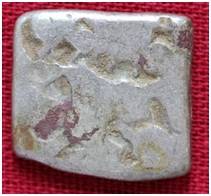 | Description / विवरण | The shape of the coin is rectangular. This is an imperial type of punch marked coin. Obverse Sun and two indistinct symbols. Reverse An indistinct symbol. |
