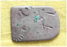 | Description / विवरण | The shape of the coin is irregular. This is an imperial type of punch marked coin. Obverse Sun, six armed symbol, and some indistinct symbols. Reverse An indistinct symbol. |