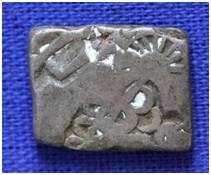| Description / विवरण | The shape of the coin is rectangular. This is an imperial type of punch marked coin. Obverse Three arched hill crescent on the top, caduceus, Sun and an indistinct symbol. Reverse Caduceus. |