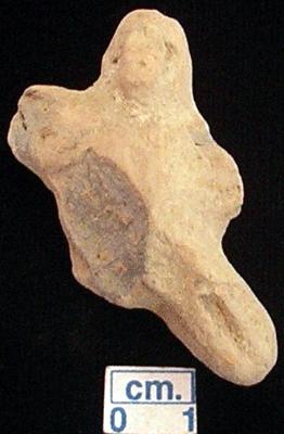 | Description / विवरण | An archaic terracotta human figurine with small head, red, pinched nose, punched eyes, slit mouth, short out stretched arms but right one is partialy broken and left one is broken, short wide bridged stumpy legs with two incised lines on the left one and right one is broken, treated with red wash, handmade. |