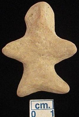 | Description / विवरण | A star shape archaic terracotta human figurine with round head, red, pinched nose, punched eyes, short out stretched arms, short wide bridged stumpy legs, treated with red wash, handmade. |