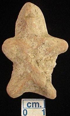 | Description / विवरण | An archaic terracotta male figurine with round head, red, pinched nose, punched eyes, slit mouth, short out stretched arms, short wide bridged stumpy legs, pinched phallus, treated with red wash, handmade. |