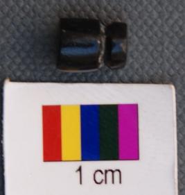 | Description / विवरण | Tiny object, which looks cylindrical in shape. Its neck is marked by a deep incised line. |