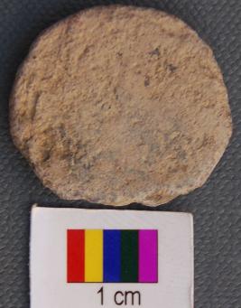 | Description / विवरण | It is round in shape and flatish on both side. The obverse part is slightly shallow. The symbols are indeterminant. |