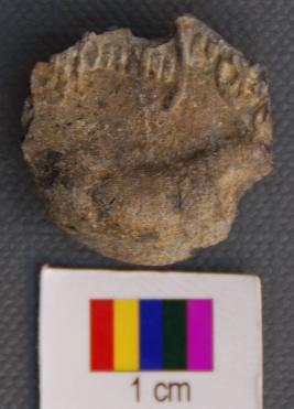 | Description / विवरण | It is a roughly round terracotta object with seal impression depicting unicorn and Harappan letters. It is partially broken. Perhaps it was stamped by a circular seal. Its obverse is rough. |